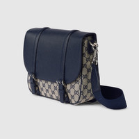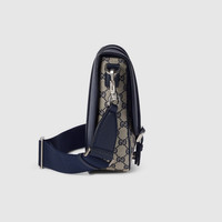 A selection of men's bags, including cross-body bags, briefcases and totes have been reshaped with functional details. Featuring a light construction in a beige and blue color palette, the GG motif defines each style made from the signature Original GG canvas. A dark blue leather trim completes this cross-body bag, complete with one zip pocket and flat pocket. - Beige and blue Original GG canvas - Dark blue leather trim - Original GG canvas lining - Buckle front - Inside: 1 zip pocket and 1 flat pocket - Detachable and adjustable canvas shoulder strap with 21.6" drop; Length: 31.5"-49" - Flap and magnetic closure - Medium: 18.5"W x 11.8"H x 10.6"D - Weight: 2.3lbs approximately - Made in Italy