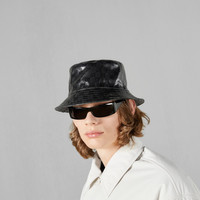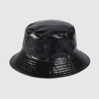 With its lustrous surface and durable characteristics, the GG Crystal canvas lends itself well to the men's Fall Winter 2023 accessories line, adding a modern feel to established House designs. The Gucci monogram continues to enrich everyday pieces with a distinct logo feel. Here, the pattern decorates this black bucket hat. - Black GG Crystal canvas - Made in Italy