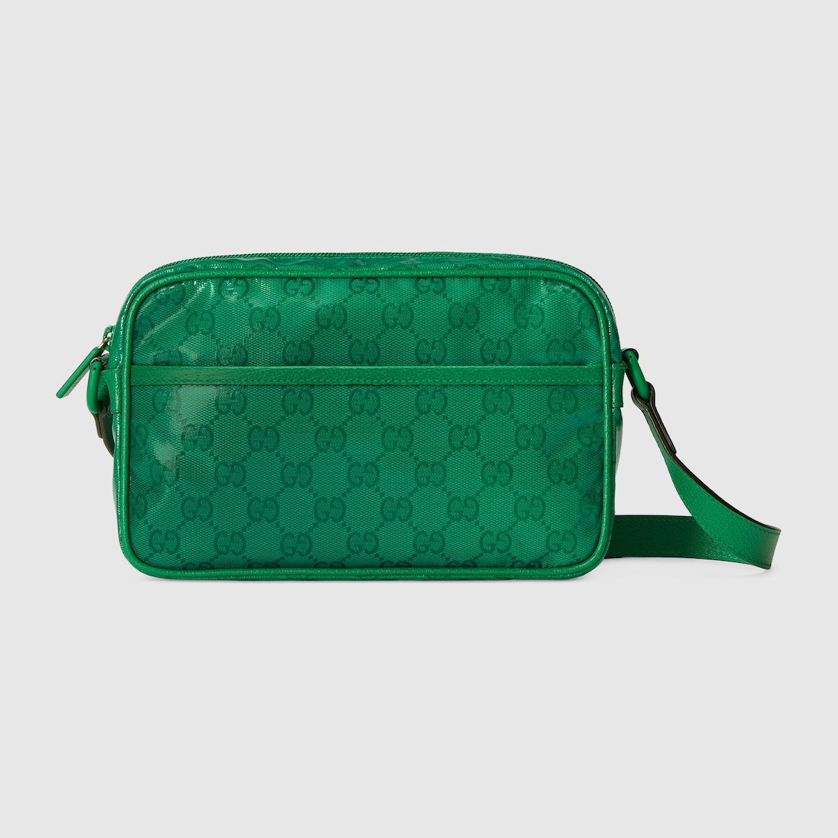 The GG Crystal canvas is well-known for its sportswear connotations and modern characteristics. The archival emblem appears across a shiny, durable surface, reimagining a selection of signature pieces for the Men's Fall Winter 2023 collection with a contemporary feel. Crafted from green GG Crystal, this mini shoulder bag follows the theme. - Green GG Crystal canvas - Green leather trim - Palladium-toned hardware - Nylon lining - Inside: 1 pocket with snap button - 1 external pocket - Adjustable shoulder strap with 19.6" drop - Zip closure - Made in Italy - Weight: 5,4lbs approximately