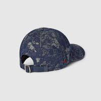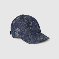 In the Fall Winter 2025 collection, GG denim evolves with a tonal camouflage effect. Here it's presented across a baseball cap, revealing a green and red Web detail. - Dark blue camouflage-effect GG denim - Cotton lining - Web detail - Adjustable buckle closure - Made in Italy