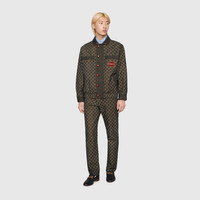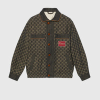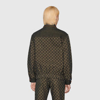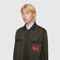 Crafted from GG denim, this jacket is embellished by the ‘Gucci quelle qu’en soit la saison’ sartorial label. The motto in French translates literally to "Gucci whatever the season" and plays on the concept that Gucci can be worn at any time. Gucci Aria presents heritage elements like the GG motif within a collection that lingers over the edge of the beginning. - Black and ivory GG denim - Brown leather piping - Woven leather buttons - 'Gucci quelle qu’en soit la saison' label - Satin jacquard lining - Front patch pockets - Elastic waistband - Length: 70cm, based on a size 46 (IT) - Made in Italy - The person is 6'1" tall. The product shown in this image is a size 46 (IT)