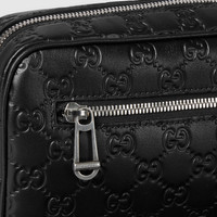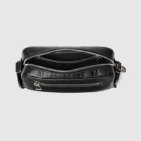 GG Emblem reinterprets the House's history of elegance and craftsmanship, in smooth leather embossed with the GG motif. This crossbody bag features a detachable, adjustable shoulder strap which makes it a multifunctional piece. - Black embossed GG smooth leather - Black leather trim - Black cotton linen lining - Web detail - Inside: 1 zip pocket - Outside: 1 zip pocket - Adjustable and detachable canvas shoulder strap with 3.1" - 57.4" drop - Zip closure - 9"W x 5.7"H x 2.3"D - Weight: 1.1lbs, approximately - Fits iPhone Pro Max/Plus, bi-fold wallet or card case, and Airpods
