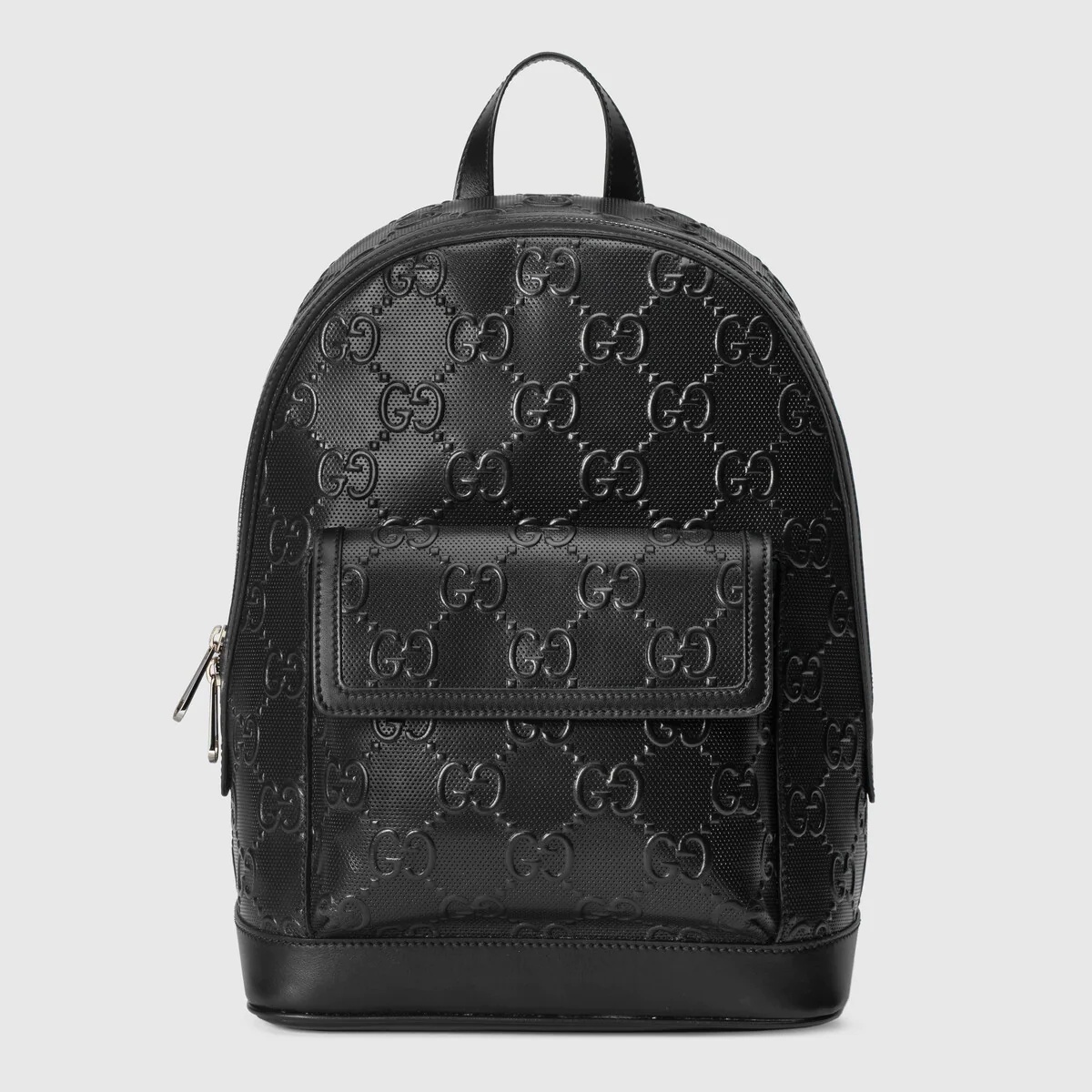 A new backpack shape introduced for Ouverture in a medium size with a front pocket that has a magnetic closure. Part of the House’s codes first presented during the ‘30s, the distinctive GG motif has been the inspiration for new explorations of expression for almost a century. - Black GG embossed leather - Cotton linen lining - Interior: 1 zip pocket and 2 phone cases Exterior: 1 front magnet closure pocket - Top handle with 2.8" drop - Medium size: 10.6"W x 14.6"H x 5.1"D - Weight: 1.1kg - Made in Italy - The model is 5'5" tall.