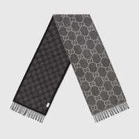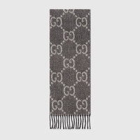The front and back GG pattern in reverse colors adds a playful note to this soft jacquard wool scarf. The monogram motif dates back to the 1970s, recalling the initials of the founder Guccio Gucci. Here it is presented in a contrasting shade of grey, while black tassels complete the style. - Grey wool with light grey GG - Black tassel detail - 13.4"W X 76.4"L - Made in Italy