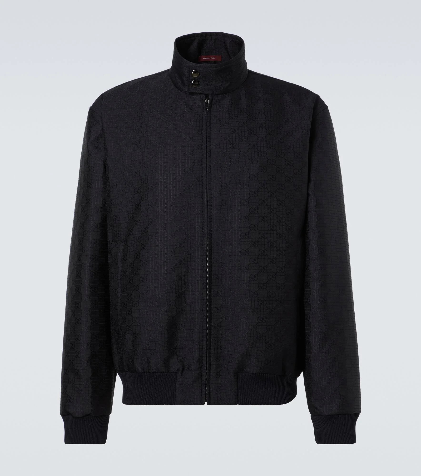 GG jacquard is a quintessentially Gucci fabric that's been part of the house's codes since the early '70s. This track jacket showcases the iconic pattern and features ribbed trims and a zip-up front. Product Details - Material: 100% polyester - Care instructions: dry clean - Made in Italy - Designer color name: Ink - Item color: black - Lining: 100% polyamide - Pocket lining: 100% cotton - Details: 98% polyester, 2% elastane - Filling: 100% polyester - Cuff: ribbed - Pockets: zipped pockets, internal pocket - Closure: zipped front, snap-buttoned fastenings - Hem: ribbed - Item number: P01124220 Size & Fit - True to size - Straight fit - Elasticated hem - Non-stretchy fabric - Falls to the hip - Height of model is 189cm-74.5" and wears a size IT 50