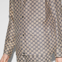 Emblematic codes of the House and refined patterns are reinterpreted in contemporary ways for the Pre-Fall collection. This boxy jacked is presented in GG linen blend canvas, offering a versatile option for the transitional wardrobe. - Beige and blue GG linen blend canvas - Unlined - Point collar - Two patch pockets - Two flap pockets - Button closure - Length: 28.3" based on a size 48 (IT) - Made in Italy - The product shown in the image is a size 48 (IT)