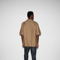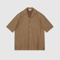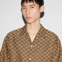 Traditional horse riding uniforms are reworked into the House's narrative. Recalling its own equestrian heritage, elements borrowed from this world define the ready-to-wear silhouettes. This shirt appears in GG Supreme linen. - Camel and ebony GG Supreme linen blend - Short sleeves - Front chest pocket - Front button closure - Length: 30.3"; Sleeve length: 22.4", based on a size 48 (IT) - Made in Italy - The model is 6'1" and is wearing size 48 (IT)