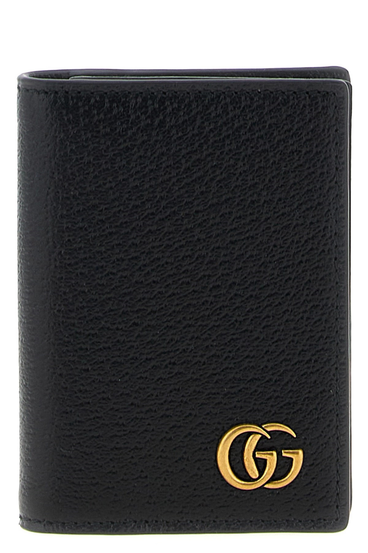 cod. 428737DJ20T1000 'GG Marmont' business card holder in hot-pressed calf leather with a rough effect, antiqued metal logo on the front, and a book opening. Color: Black Size & Fit: W 8 x H 10.5 cm Composition: 100% calfskin leather (Bos Taurus) Made in: Italy PROMO CODE NOT APPLICABLE