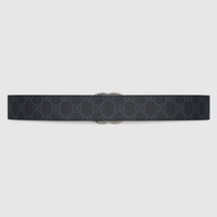 Designed to be worn time and time again thanks to the versatility of the design, this reversible leather belt is presented in black GG Supreme canvas and black leather. The recognizable Double G hardware completes the contemporary design with an archival reference. - Black GG Supreme canvas, on one side and black leather on the other - Palladium-toned hardware - Double G buckle - 1.5" belt width - Made in Italy - Can be worn as a hip or waist belt. Sizing will differ based on where the belt is worn, please refer to the size guide to find your size.