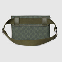 In the Fall Winter 2025 collection, the GG Monogram coated fabric offers a fresh take on one of the House's signature motifs. It's presented here across a small belt bag and completed with a tonal leather trim. - Forest green GG Monogram coated fabric - Green leather trim - Cotton linen lining - Flap and buckle closure - 9.4"W x 6.5"H x 2.4"D - Made in Italy - Fits iPhone Pro Max/Plus, bi-fold wallet or card case, and Airpods