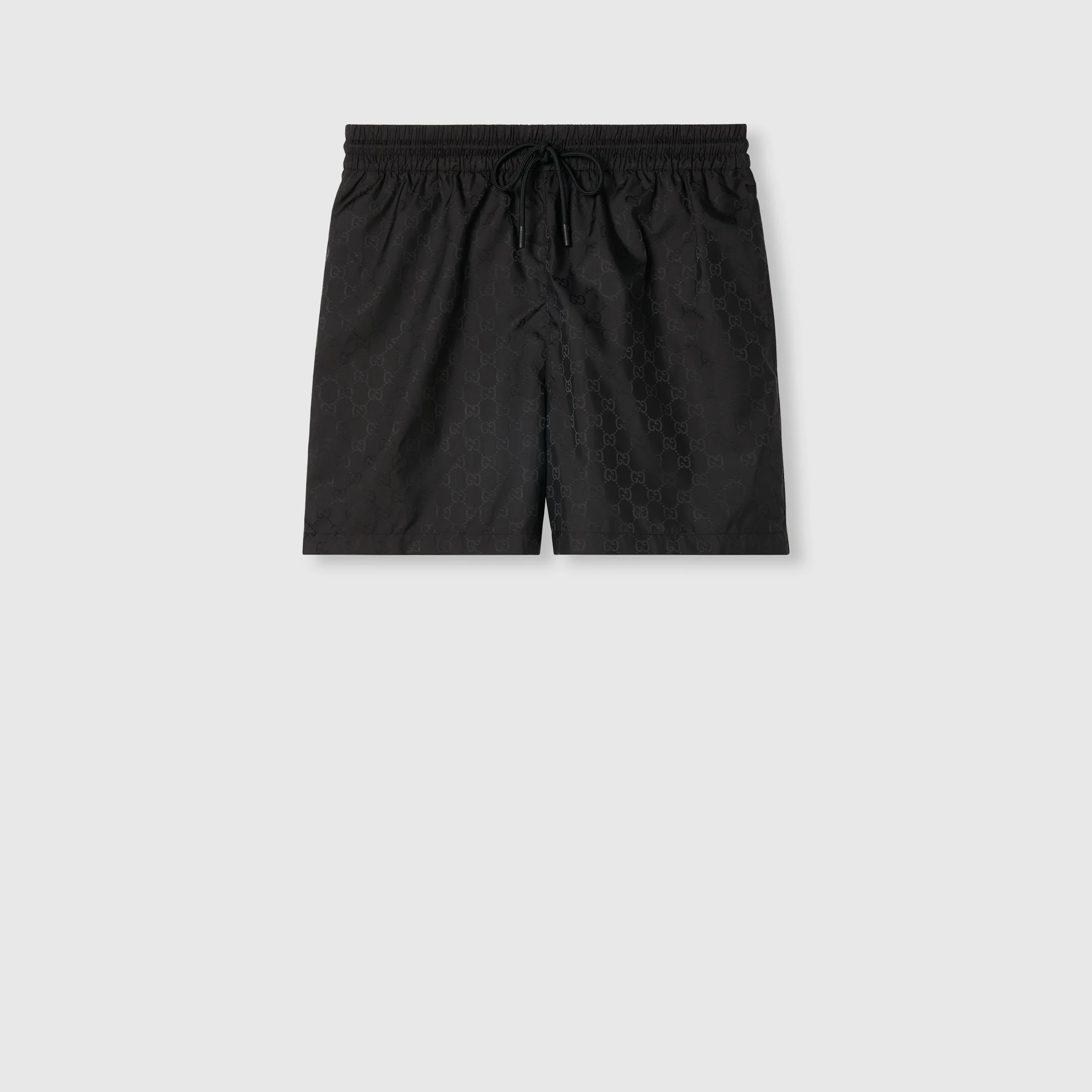 Everyday pieces are elevated with the Gucci selvedge or Gucci vintage logo print for an urban feel. This pair of swim shorts is crafted from black GG nylon. - Black GG nylon - This item comes with a matching pouch - Elastic waistband with drawstring - Side pockets - Back pocket - Please note that intimates, including swimwear, tights, socks and lingerie can only be returned in new condition. Items should be unworn, in their original packaging and with all labels attached - Made in Italy