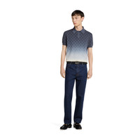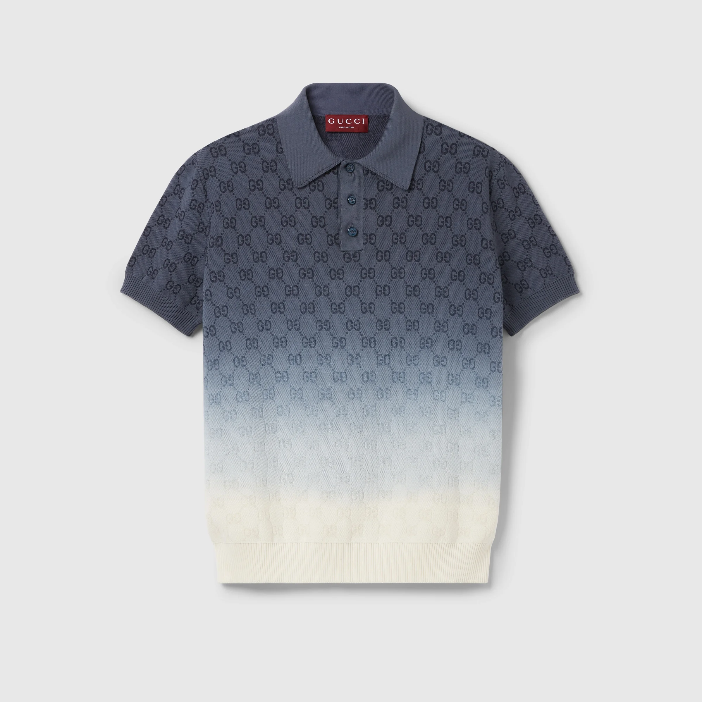 Gradient colors are meticulously created to bring out the texture of the materials and the recognizable GG motif. Crafted from GG cotton knit jacquard, this polo T-shirt appears in gradient dark blue and white. - Gradient dark blue to white garment dyed GG cotton knit jacquard - Polo collar - Short sleeves - Rib trim - Button closure - Made in Italy