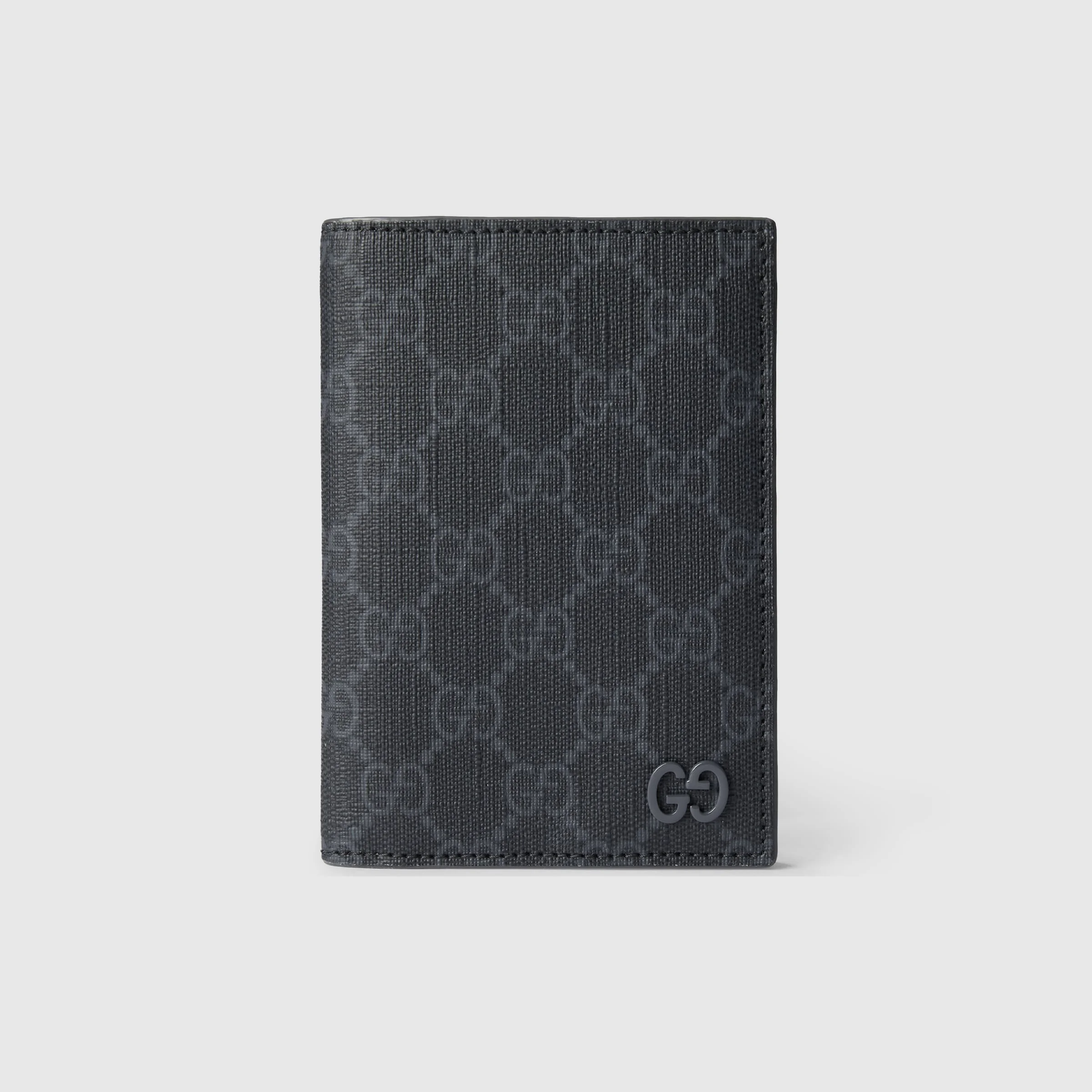 Slim and compact small leather goods from the latest collections highlight new colorful shades sporting the GG logo with a bicolor design. This passport case with four card slots appears in a black GG Supreme canvas, complete with a smooth grey leather interior. - Black GG Supreme canvas - Grey leather interior - Brass hardware with dark grey ceramic-effect finishing - Moiré lining - GG detail - Inside: 4 card slots, 1 passport pocket - Closed: 3.7"W x 5.3"H; Open: 7.5"W x 5.3"H - Weight: 0.158lbs approximately - Made in Italy