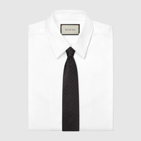 First used in the 1970s, the GG logo was an evolution of the original Gucci rhombi design from the 1930s, and from then it's been an established symbol of Gucci's heritage. The Web stripe, shown as a subtle detail on the inside, acts as a symbol of membership and a recognizable Gucci code. - Black GG pattern silk - Handmade - 8 x 146 cm - Made in Italy