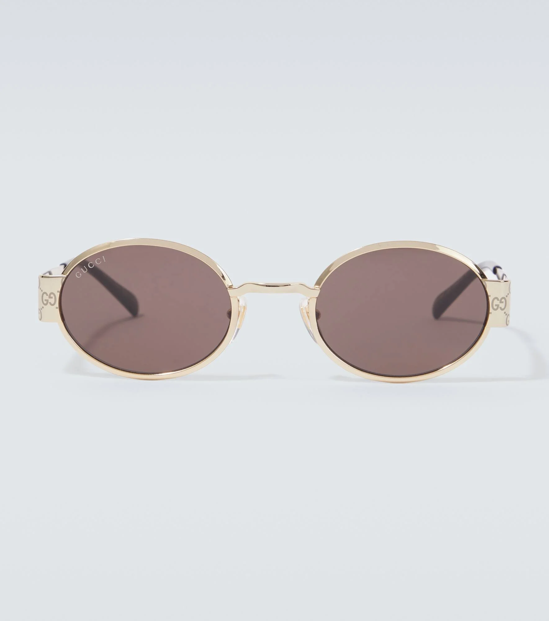 A now-iconic reference to Gucci founder Guccio Gucci's initials, GG has become one of fashion's most recognizable symbols. The pattern is featured here on the arms of these round-lens sunglasses. Product Details - Frame material: metal - Frame color: gold - Lens filter category 3 - Lens color: brown - Made in Japan - Includes: logo-embossed hard case , cleaning cloth - The color of the case may vary - Item number: P01054551 Size & Fit - Lens width: 50mm-1.95" - Bridge size: 20mm-0.8" - Earpiece length: 147mm-5.8"