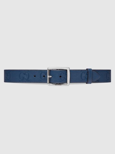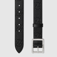 Versatile pieces continue to enrich the Gucci Cruise 2024 collection. Presented in GG rubber-effect leather, this striking belt features a square palladium-toned buckle to bring definition to everyday styling. - Black GG rubber-effect leather - Palladium-toned hardware - Square buckle - 1.3" width - Made in Italy - Can be worn as a hip belt. Sizing will differ based on where the belt is worn, please refer to the size guide to find your size.