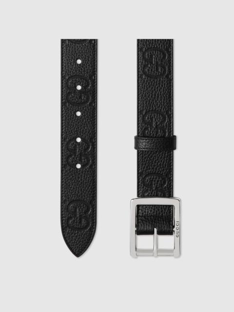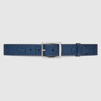 Versatile pieces continue to enrich the Gucci Cruise 2024 collection. Presented in GG rubber-effect leather, this striking belt features a square palladium-toned buckle to bring definition to everyday styling. - Blue GG rubber-effect leather - Palladium-toned hardware - Square buckle - 1.3" width - Made in Italy - Can be worn as a hip belt. Sizing will differ based on where the belt is worn, please refer to the size guide to find your size.