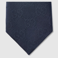 Introducing Spring Summer 2026. Silk and soft accessories designs continue to reinterpret emblematic codes through a creative lens in the La Famiglia collection. This tie is stated in GG silk cotton jacquard and reveals a Gucci crest label on the reverse. - Blue GG silk cotton jacquard - Gucci crest label - 2.75"W x 58.2"L - Made in Italy - Main fabric: cotton 56%, silk 44%; Lining: cotton 56%, silk 44%
