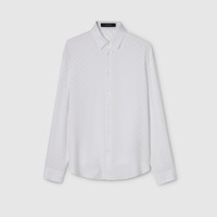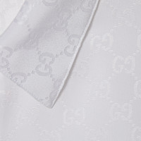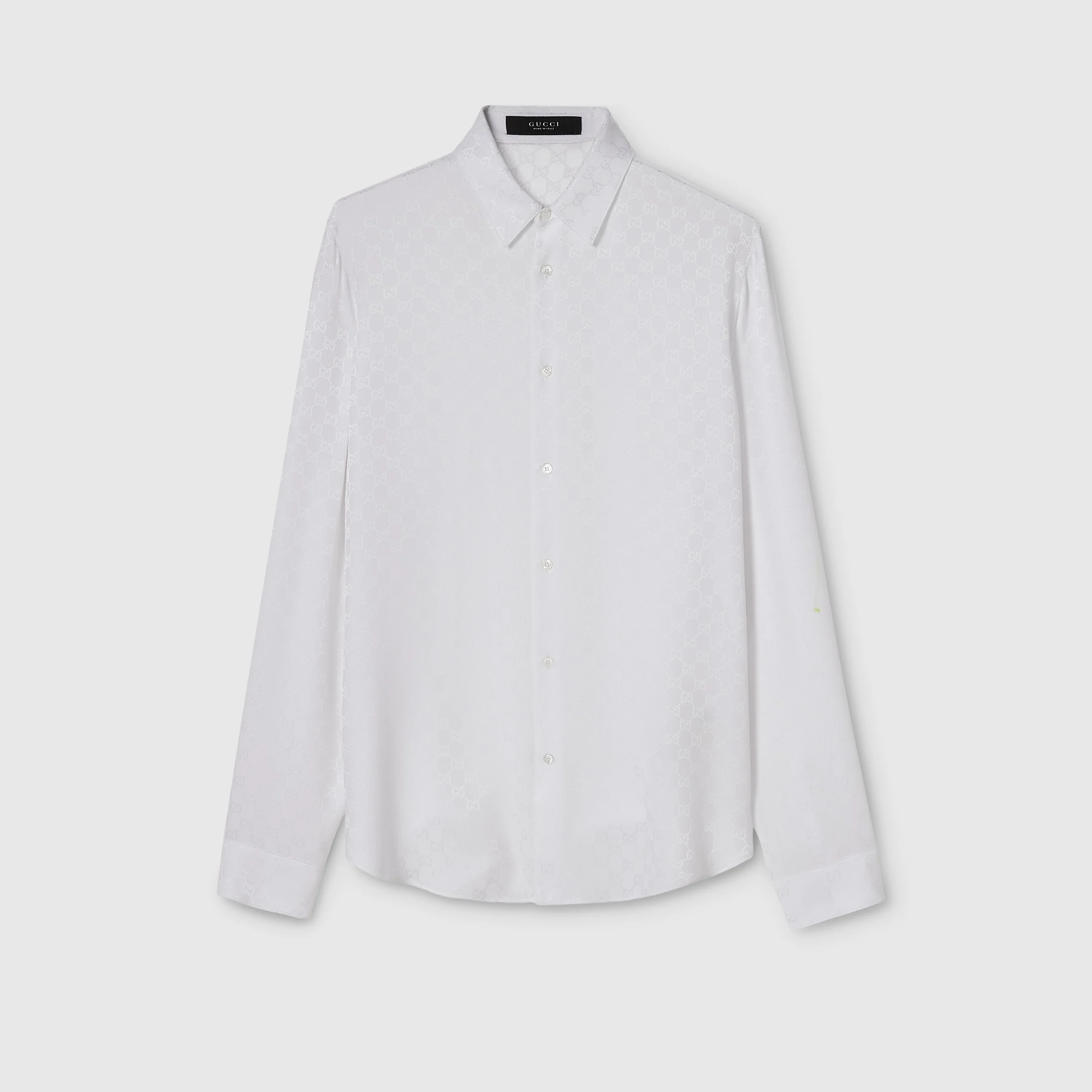 Introducing Spring Summer 2026. This style is inspired by the "Narcisista" look of La Famiglia. The collection reinterprets the House’s codes through singular personalities and distinctive aesthetic attitudes. This shirt is crafted from GG silk jacquard. - White GG silk jacquard - Point collar - Long sleeves - Front button closure - Length: 29.5"; Sleeves length: 35.2", based on a size 15 - Made in Italy - Fabric: 100% Silk