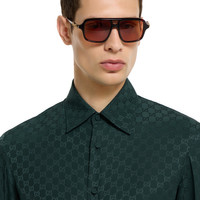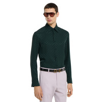 In the Fall Winter 2025 collection, a tailored shirt with a sleek, close-to-the-body silhouette. Designed with a pointed collar, long sleeves, and a concealed button closure for a refined finish. - Dark green GG silk jacquard - Point collar - Long sleeves with buttoned cuffs - Button closure - Slim fit - Total length: 28.3"; Shoulder: 17.5"; Chest: 20"; Sleeve length: 26.1"; Neck width: 15.9"; (size 46 IT)