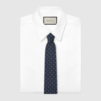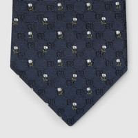For the Cruise 2025 collection, signature symbols and codes of the House are reimagined in a modern way. Archival details and streetwear inspired shapes combine in a selection of soft accessories pieces, like this GG floral silk jacquard tie. - Blue and white GG floral silk jacquard - Gucci bee label on the back - 2.7"W x 58.2"L - Made in Italy