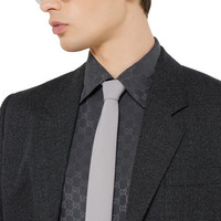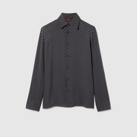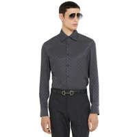 In the Fall Winter 2025 collection, a tailored shirt with a sleek, close-to-the-body silhouette. Designed with a pointed collar, long sleeves, and a concealed button closure for a refined finish. - Dark grey GG silk jacquard - Point collar - Long sleeves with buttoned cuffs - Button closure - Slim fit - Total length: 28.3"; Shoulder: 17.5"; Chest: 20"; Sleeve length: 26.1"; Neck width: 15.9"; (size 46 IT)