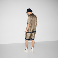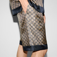 Taking inspiration from founder Guccio Gucci's monogram, the GG motif continues to be a firm favorite of the House. These relaxed shorts have been made from a silk twill with an allover GG print. - Blue and beige silk twill - Allover GG print - Elastic waist with drawstring - Two side pockets - Two back pockets - Length: 21.4" - Leg opening: 13.3" - Made in Italy