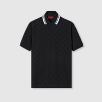 The Pre-Fall 2024 collection presents contemporary style with a twist. A black allover GG defines this polo—bringing a surprising and refined take on its stretch cotton piquet construction. The piece is accentuated by black and white striped collar. - Black and multicolor GG stretch cotton - Black and white striped collar - GG embroidery - Short sleeves - Shoulder drop: 18.1"; based on a size S - Chest: 21.6"; based on a size S - Sleeves length: 9.2"; based on a size S - Button-through placket - Regular fit - Length: 28.9"; based on a size S - Made in Italy - The model is 6' and is wearing size small - Fabric: 94% Cotton, 6% Elastane - Trimming: 100% Cotton - Embroidery: 89% Cotton, 11% Polyester