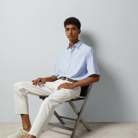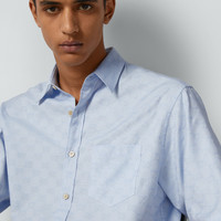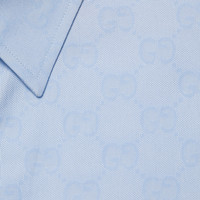 Welcoming warmer days, the men's Cruise 2024 collection presents sportier pieces with vibrant prints. The GG Supreme motif continues to lend an archival touch, while the subtle print exudes discreet modernity. This Oxford cotton shirt in light blue complements every occasion. - Light blue GG Supreme Oxford cotton - Point collar - Patch pocket - Short sleeves - Button closure - Length: 30.3", based on a size 15+ - Made in Italy - The product shown in this image is a size 15+