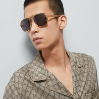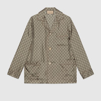 The menswear selection for Cruise 2024 takes inspiration from the 1990s. Moleskin fabric and heritage patterns inspired by the House archives enrich new jackets, paired with denim pants for a modern edge. Presented in beige and ebony GG supreme print on silk, this boxy jacket is completed with a piped trim. - GG supreme print beige and ebony silk - Piped trim - Notch collar - Long sleeves - Three front pockets - Button closure - Length: 31.4", based on a size 48 (IT) - Made in Italy - The product shown in this image is a size 48 (IT)