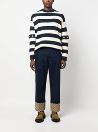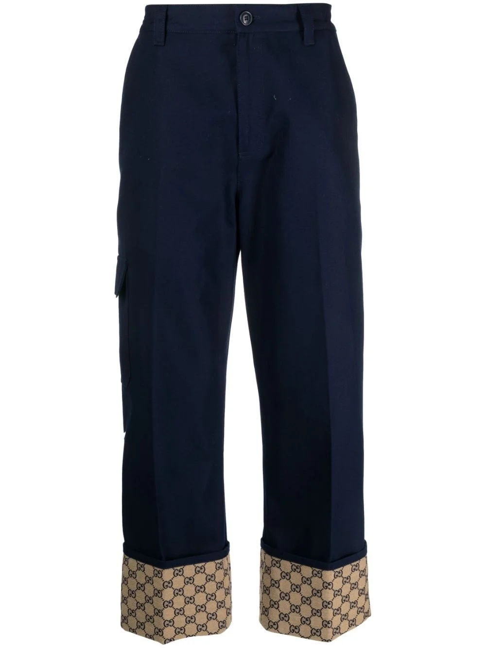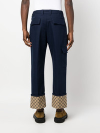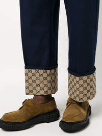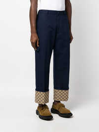 GG Supreme straight-leg trousers Highlights - Navy blue - Cotton - Signature gg supreme print - Contrasting panel detail - Belt loops - Front button and zip fastening - Straight leg - Pressed crease - Two side slit pockets - Two rear flap pockets - Side patch pocket Made in Italy Composition Cotton 100% Washing instructions Read Manufacturer Guidelines