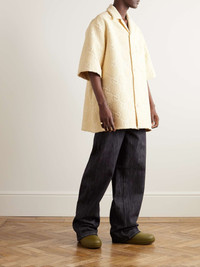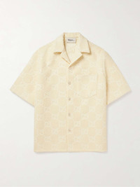 Oversized Camp-Collar Monogrammed Terry-Jacquard Shirt