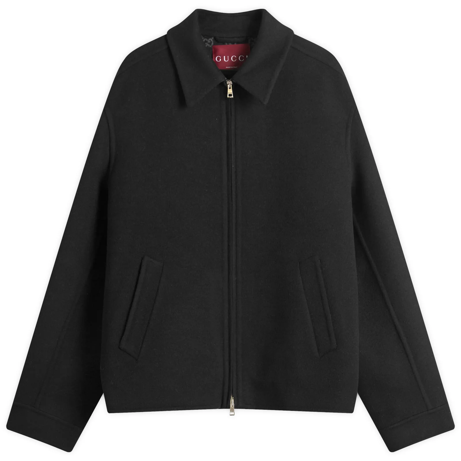 Adding a refined yet luxury aesthetic to your smart casual looks has never been easier thanks to this Gucci jacket. Made in Italy from a wool and silk blend, a minimalist profile is elevated by practical flap pockets on the front. - 99% Wool, 1% Silk - Point Collar - Zip Closure - Flap Pockets - Style Code: 794813-Z7AON-1120
