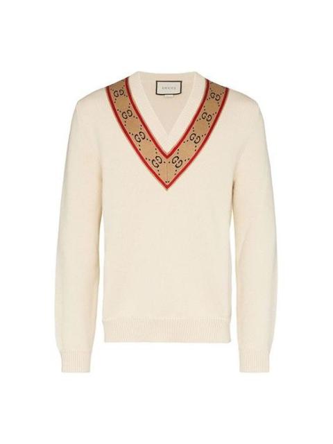 Gucci GG V-neck Wool Sweater 'Beige' 577089-XKAUO-9166