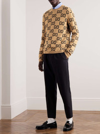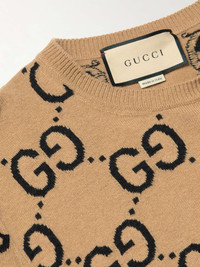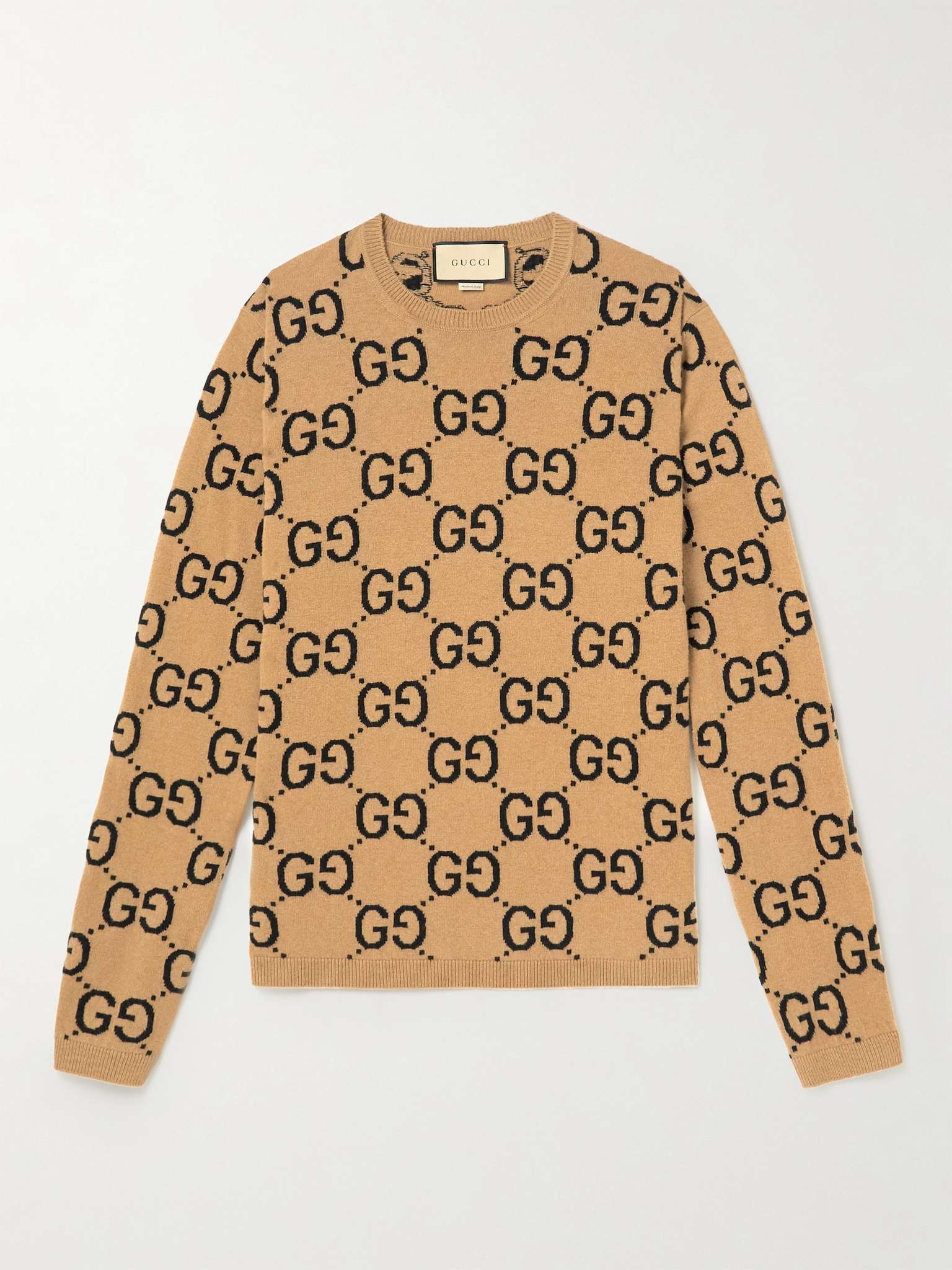 There'll be no doubting your allegiance to the house of Gucci when you wear this sweater. It's been made in Italy from wool and jacquard-knitted all-over with the iconic 'GG' motif. Size & Fit - Model wears a size larger to achieve a looser fit - Mid-weight knit - S/M/L sizing Details & Care - Tonal-brown wool - 100% wool - Dry clean