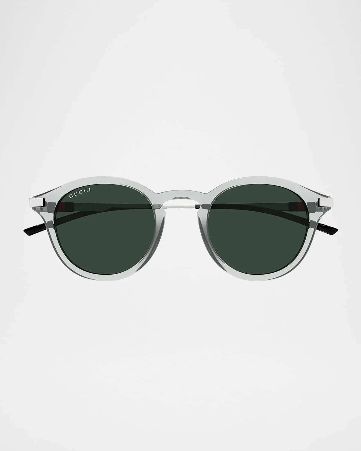 - Gucci "GG1890SAM" round sunglasses in acetate - Logo with green and red stripes on the temples - Lens/bridge/temple (in mm): - 49-22-145 - Solid-color lenses - Right lens logo script - Keyhole nose bridge - Thin arms - Curved, capped temple tips - Acetate - 100% UVA/UVB protection - Made in Japan - Proposition 65 warning for California residents