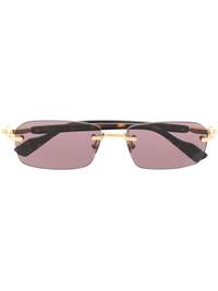 rimless rectangle-frame sunglasses Characterised by a distinctive retro aesthetic, these Gucci Eyewear sunglasses showcase narrow metal frames with acetate tips. Designed to bring joy to each and every day, they're finished with tinted lenses. Highlights - Gold-tone - Rectangle frame - Rimless lenses - Brown tinted lenses - Uv-protective lenses - Nose pads - Straight arms - These glasses come with a protective case. Made in Italy Composition Metal (Other) 100% SIZE & FIT Measurement Arm Length 5.51 in(14 cm) Bridge Width 0.62 in(1.6 cm) Lens Diameter 2.2 in(5.6 cm) Total Width 5.31 in(13.5 cm)