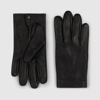 The Cruise 2026 men's soft accessories collection is a journey through legacy and modernity rooted in Gucci's archives. Crafted from a grainy leather, these versatile gloves feature a Web detail. - Black grainy leather - Web detail - Snap button closure