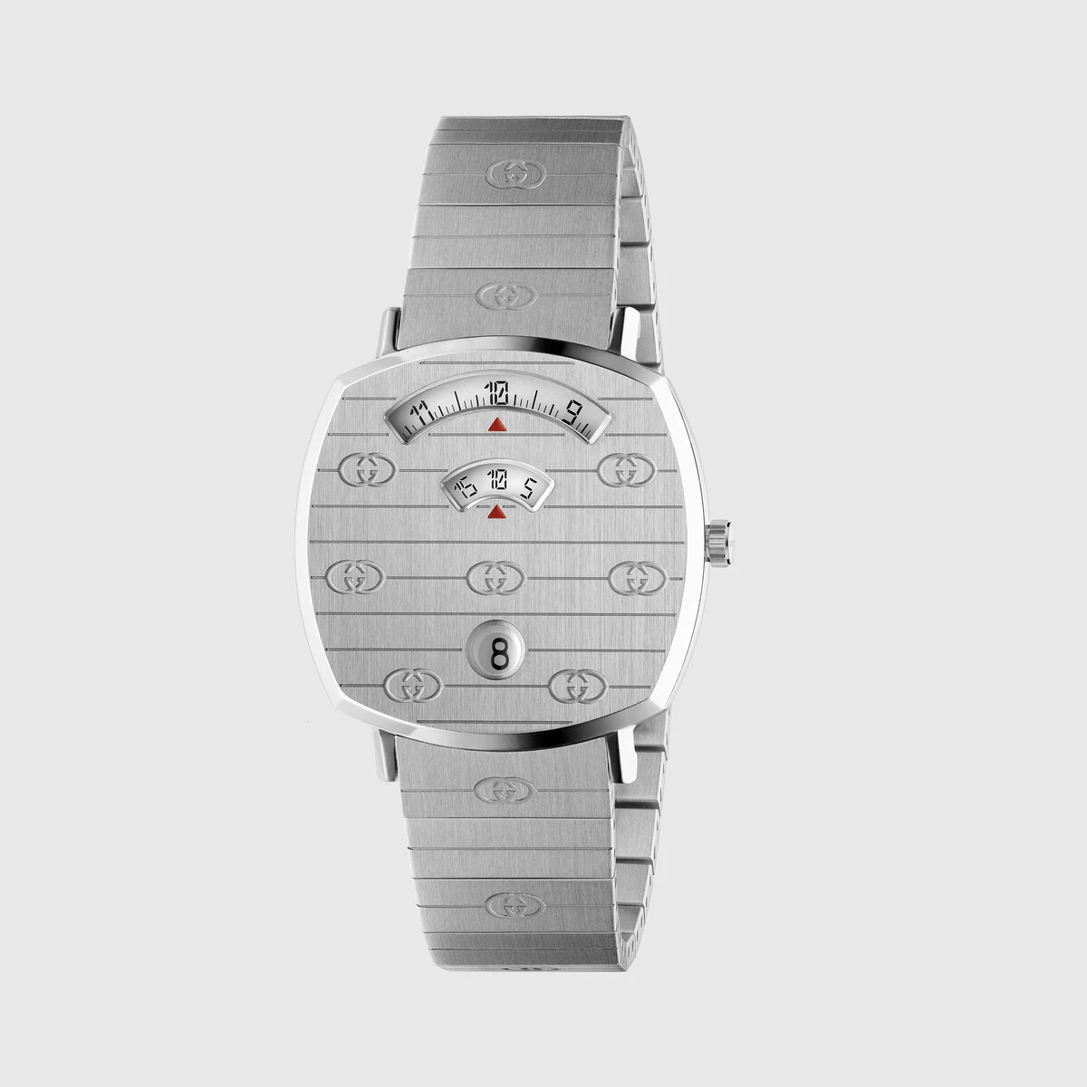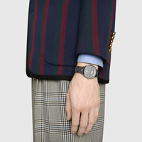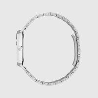 A clean, streamlined design that fits snugly around the wrist, the Grip watch takes its inspiration from the world of skateboarding, its name recalling the way the rider’s sneakers stick to the grip tape on a skateboard. The stainless steel face has three windows to display the hour, minute and date, completed with a matching bracelet with engraved Interlocking Gs. - Steel case with engraved Interlocking Gs, 3 windows indicating hour, minute and date, steel bracelet with Interlocking Gs - The warranty certificates for Gucci watches purchased after March 1st 2022 are exclusively available online. - Download your certificate at - by using the serial number engraved on the back of your watch. - Quartz movement - Water resistance: 3 ATM (100 feet/30 meters) - YA157401 - Swiss Made - Your Grip watch will arrive in a special edition floral jacquard topped packaging, available in a range of four different motifs inspired by the world of Gucci ready-to-wear. Further accentuated by a delicate gold floral pattern, the box will be individually selected for your watch and comes with a velvet pillow for product storage.