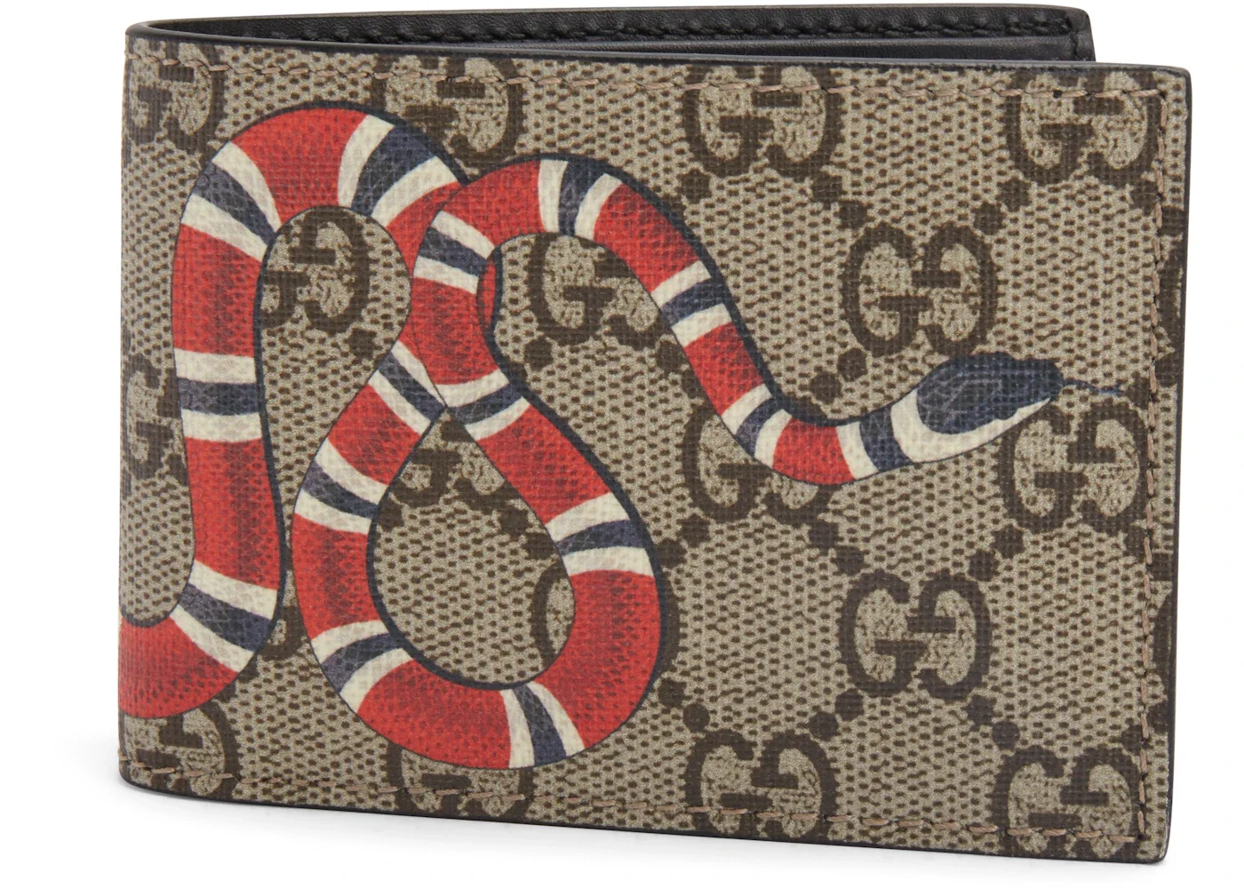 This Gucci Bifold Wallet in GG Supreme Kingsnake features the label’s now iconic Kingsnake print on a background of beige GG supreme canvas. The wallet opens to a black leather interior with four card slots and a billfold pocket and features a black leather trim.Please Note: Dust bag and box are not required for this accessory. - Dimensions 3.5H 8.5W 4.5D - Material Canvas - Retail Price 340 - Color Beige - Base Model Wallet - Base Model Variety Bifold - Color Generic Beige - Depth 4.5 - Exterior Variant King Snake - Featured false - Height 3.5 - Interior Color Black Leather Lining - Pattern GG Supreme - Styles Wallet - Width 8.5