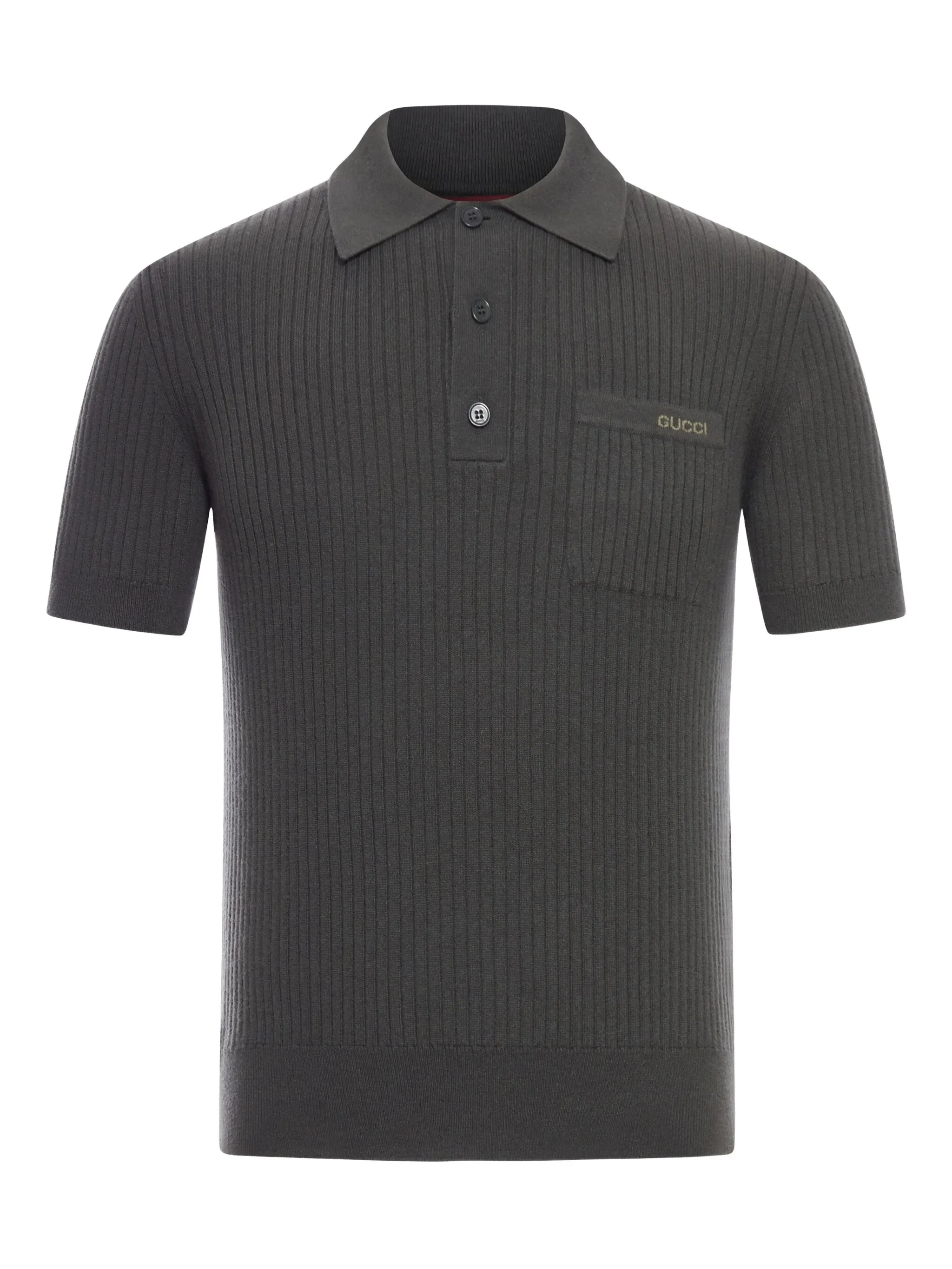 green ribbed knit chest pocket short sleeves button fastening polo collar - Color: GREEN - Made in: Italy - Designer Style ID: 833503 XKEYU 3026 Composition and care Wool: 100.0%