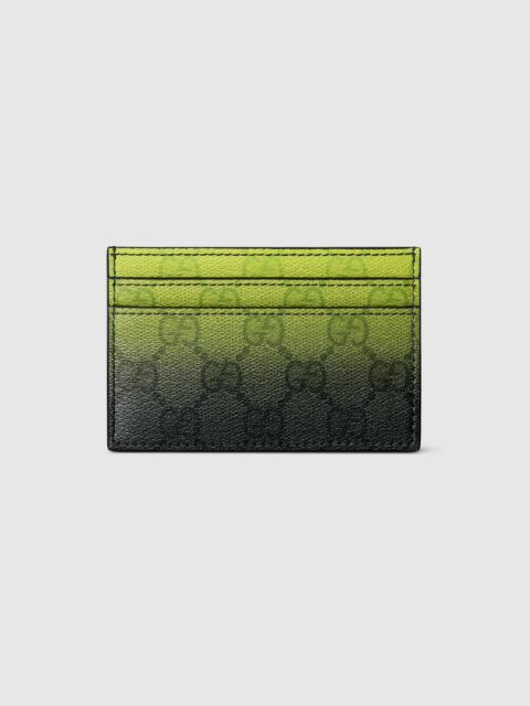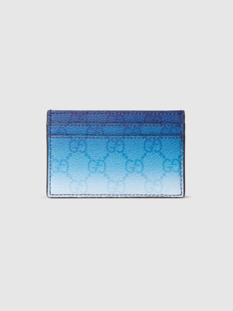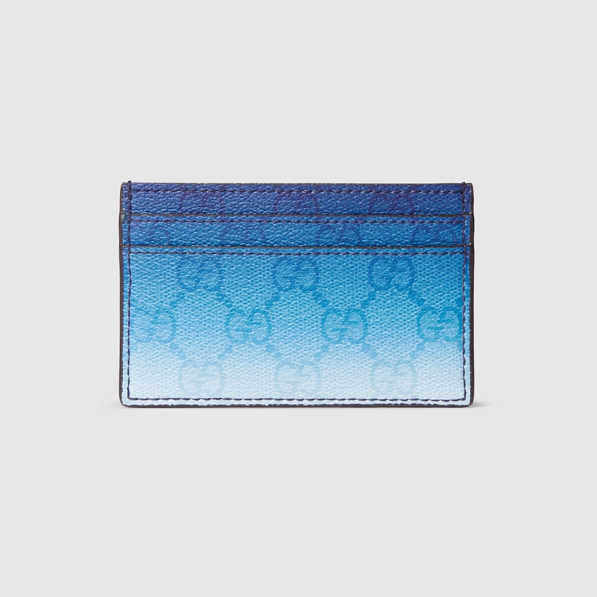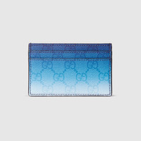 Gradient-effect print in the refreshing shade of blue sheds new light on essential functions. This card case is presented in a GG Monogram coated fabric and enriched with an allover gradient print. - Gradient blue GG Monogram coated fabric - Allover gradient GG print - Blue moire lining - Inside: 1 open compartment, 4 card slots - 4.3"W x 2.7"H - Weight: 0.1lb; approximately - Made in Italy