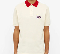 Gucci Contrast Collar Logo Printed Polo Shirt For Men Cream 574086-XJA6C-9244