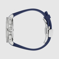 The Gucci Dive line continues to explore the House codes in contemporary ways. Designed with a steel case and a rubber bracelet, the watch is defined by a blue dial featuring the emblematic Interlocking G logo. - 40mm stainless steel case, blue dial, ceramic bezel and rubber bracelet - Sapphire glass with antireflective coating - The warranty certificates for Gucci watches purchased after March 1st 2022 are exclusively available online. - Download your certificate at - by using the serial number engraved on the back of your watch. - 30ATM (300 meters/ 980 feet) - Power reserve: 56 hours - Automatic movement - Wrist size from 5.9" to 7.5" - YA136359 - Swiss Made