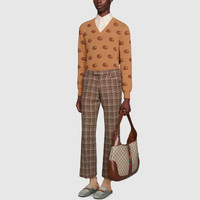 Gucci Double G Jacquard Wool V-Neck Sweater 'Camel Brown' 645292-XKBPF-8011