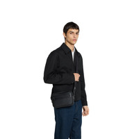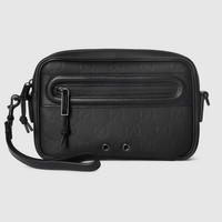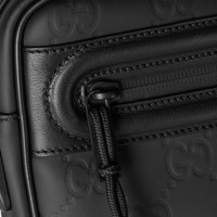 The name Gucci Edge captures the energy of streamlined silhouettes as innovative material meets lightweight adaptability, marked by the subtle GG monogram. This small crossbody bag is presented in a GG matte rubber fabric and completed with a tonal piping trim. - Black GG matte rubber fabric - Black piping trim - Black neoprene lining - Eyelet detail - Inside: 1 zip pocket - Outside: 1 detachable handle and 1 zip pocket - Wrist strap drop: 6.6" - Adjustable canvas shoulder strap with 23" drop; Length: 34.6"-59" - Zip closure - 9.6"W x 5.9"H x 1.5"D - Weight: 1.1lb, approximately - Made in Italy - Fits iPhone Plus, bi-fold wallet or card case, and Airpods