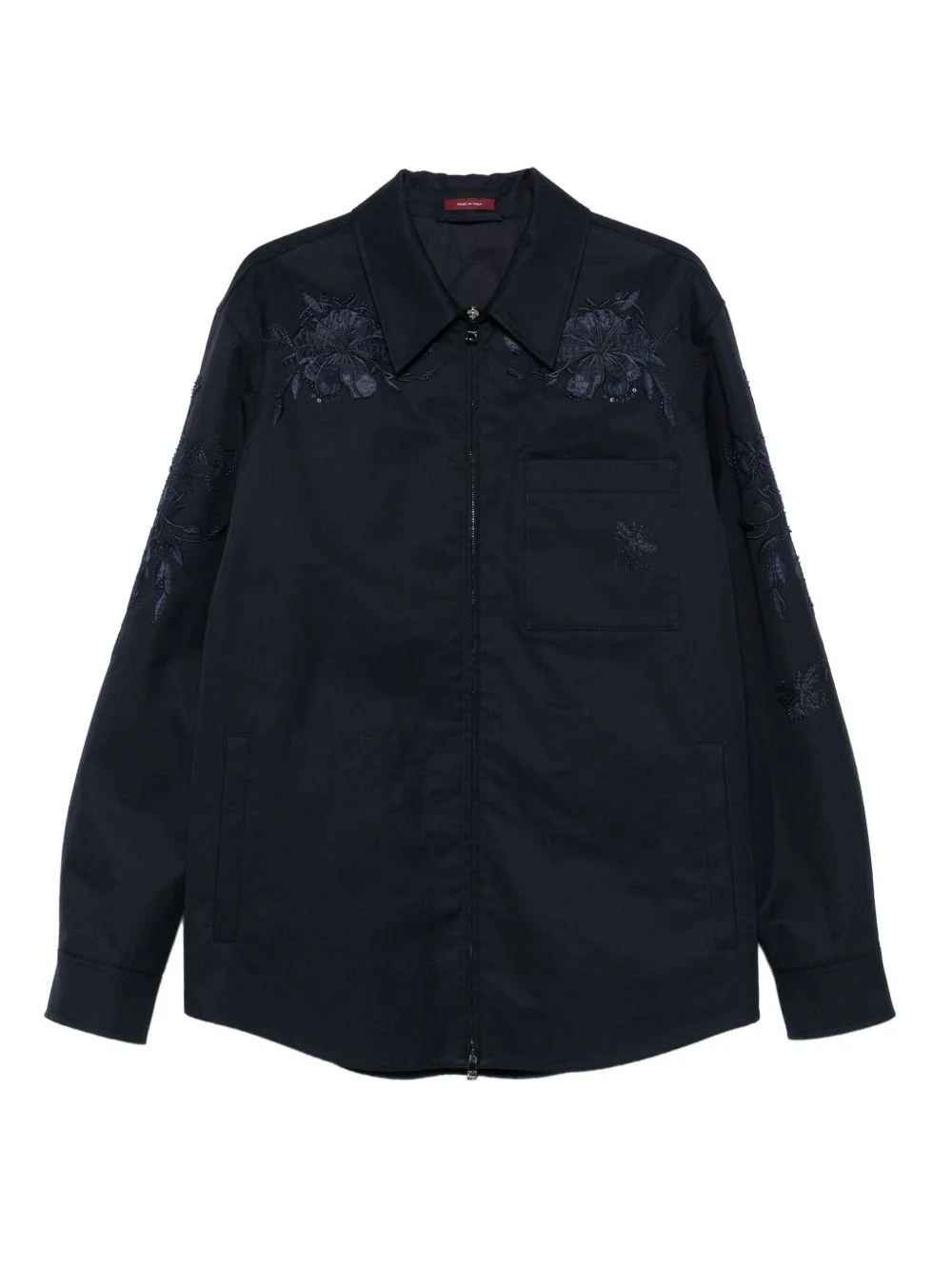 floral-embroidered zip-up jacket Highlights - Navy blue - Floral embroidery - Zip fastening - Long sleeves - Collared neckline - Patch pocket Made in Italy Composition Fabric 100% SIZE & FIT Model measurements Height 6 ft 2 in(1.87 m) Bust/Chest 36.41 in(92.5 cm) Hips 37 in(94 cm) Waist 29.52 in(75 cm) Washing instructions Read Manufacturer Guidelines