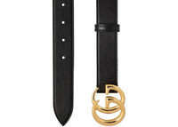 The GG Marmont leather belt with shiny buckle features a 1" belt width and a shiny double G buckle that measures 2.36"W x 1.57"H. This beautiful Gucci belt is Made in Italy, the Gucci Style Number is 414516 0YA0G 1000. This Gucci Double G emblem belt was reintroduced in this shiny gold-tone for Pre-Fall 2020. Please Note: Dust bag and box are not required for this accessory. - Dimensions 1W - Material Calfskin - Retail Price 480 - Color Black - Hardware Antique Gold-tone - Style 414516 0YA0G 1000 - Base Model Belt - Base Model Variety GG Marmont Leather - Color Generic Black - Exterior Variant with Shiny Buckle - Featured false - Interior Color Black Calfskin Interior Lining - Styles Belt - Width 1