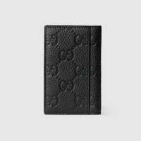 The name Gucci Imprint reflects the enduring elegance of the GG Monogram, presented as a tactile detail in everyday essentials. This card case is presented in an embossed GG grainy leather with a tonal moire lining. - Black embossed GG grainy leather - Black moire lining - Inside: 8 card slots, 2 hidden compartments - Outside: 1 card slot - Closed: 2.9"W x 4.7"H; Open: 5.9"W x 4.7"H - Weight: 0.1lb, approximately - Made in Italy