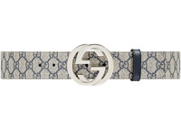 Gucci Interlocking G Palladium Buckle Belt GG Supreme 1.5"W Beige/Blue